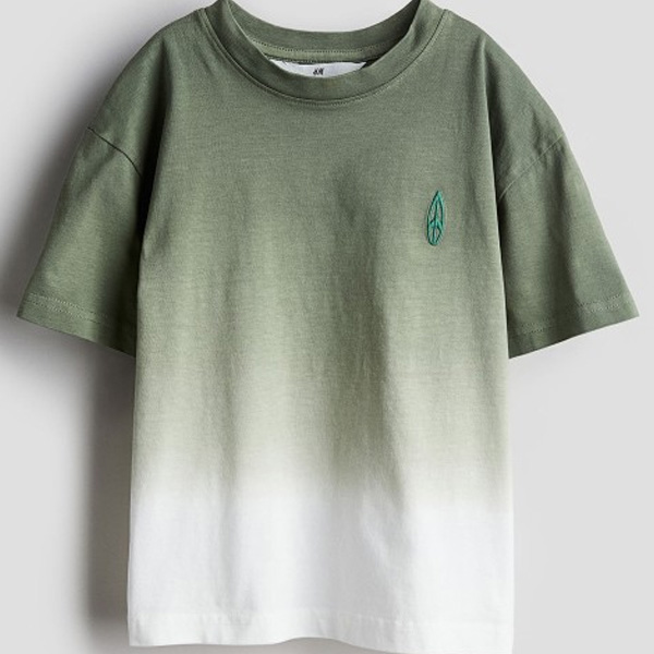 Loose-fit T-shirt in soft cotton jersey with a motif at the front. Ribbed trim around the neckline and dropped shoulders.