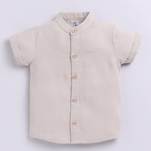Beige and grey solid T-shirt, has a round neck, short sleeves