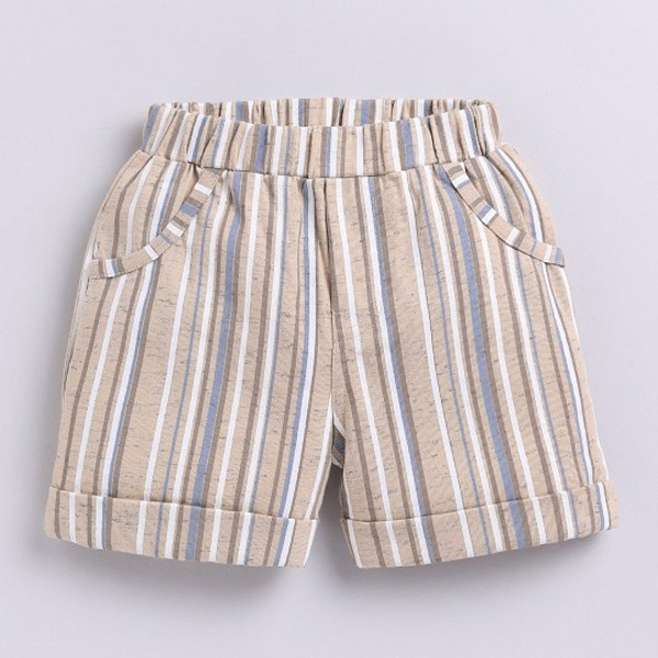 Beige and grey striped Shorts, has a button closure